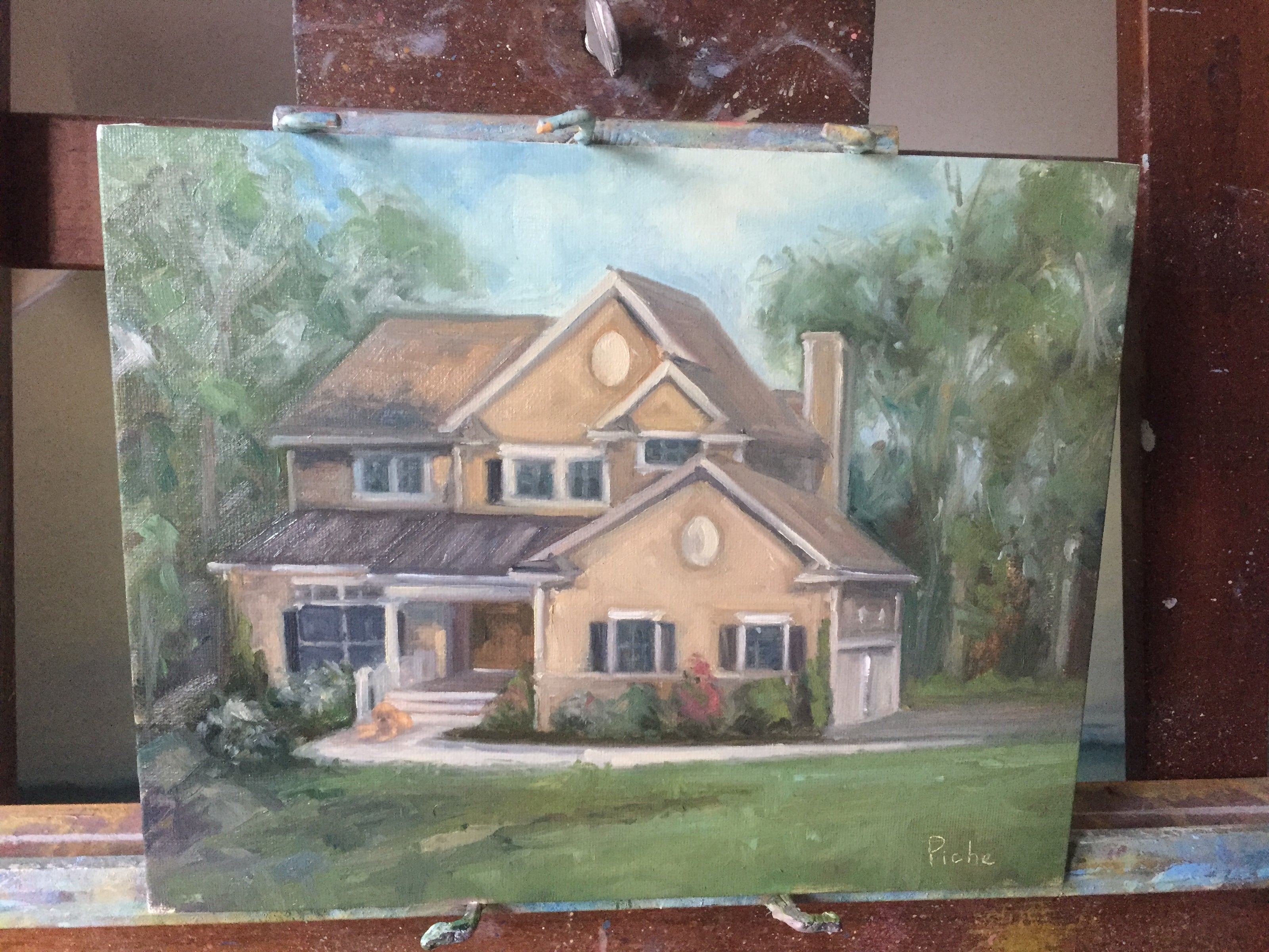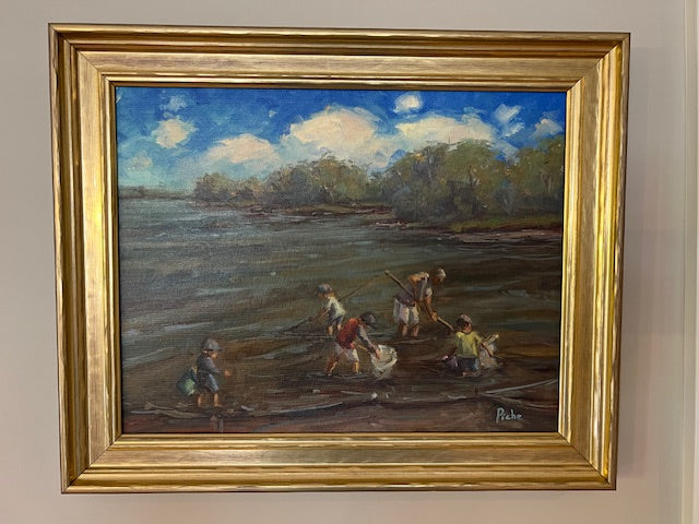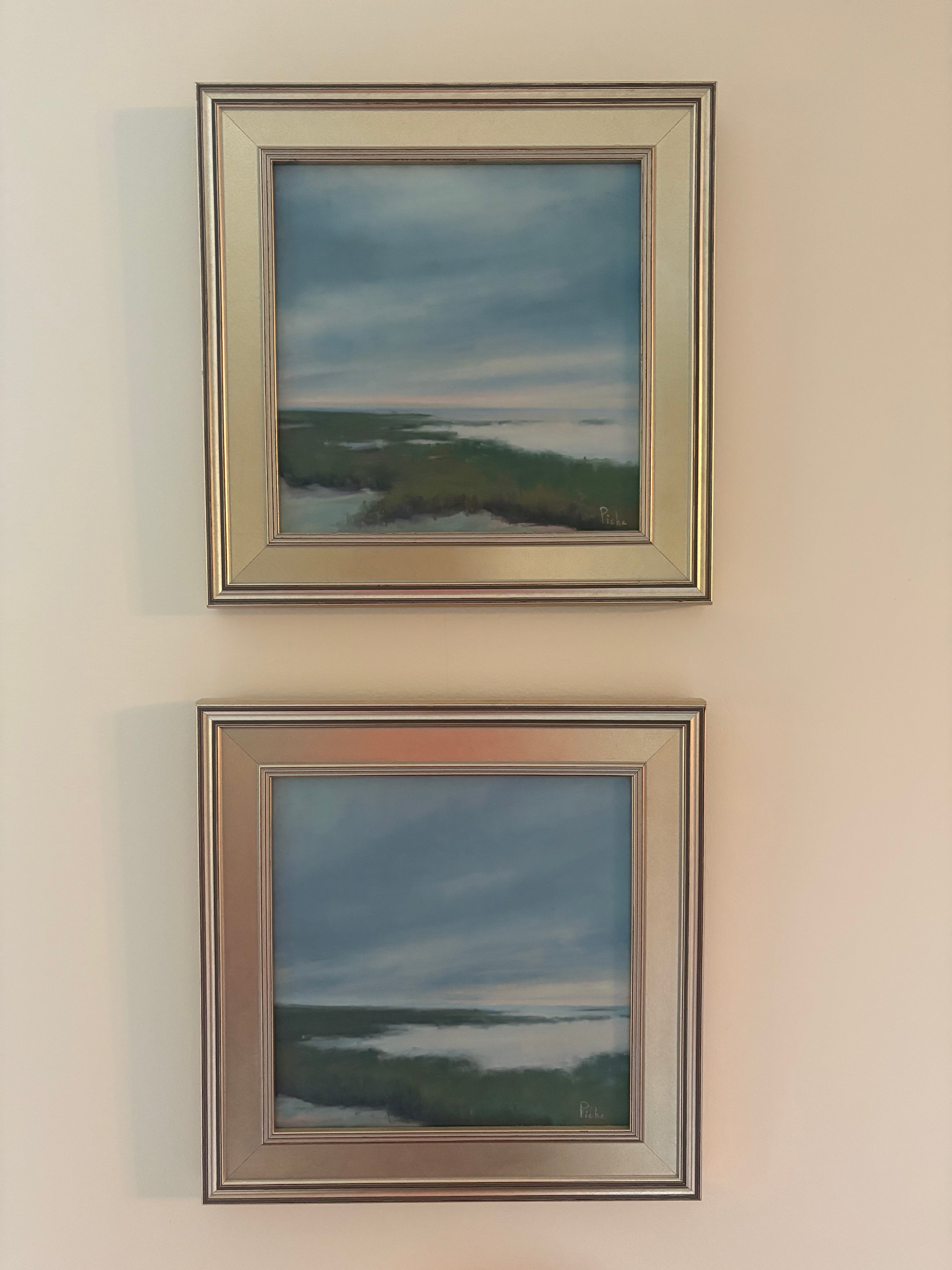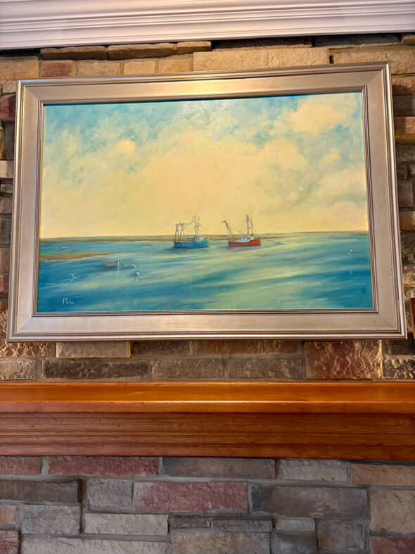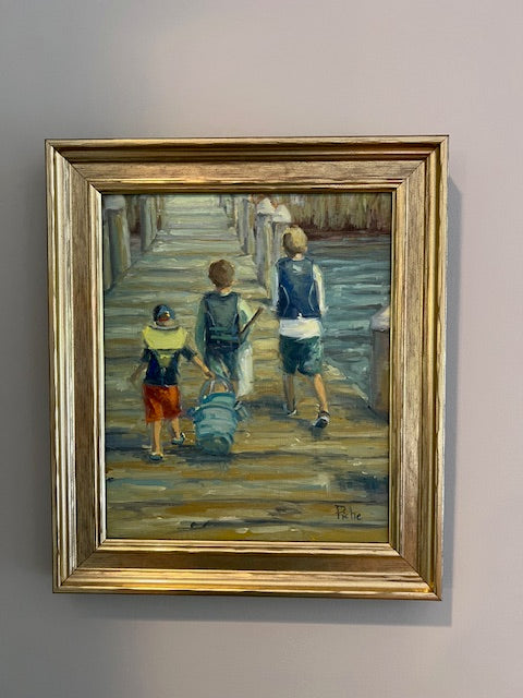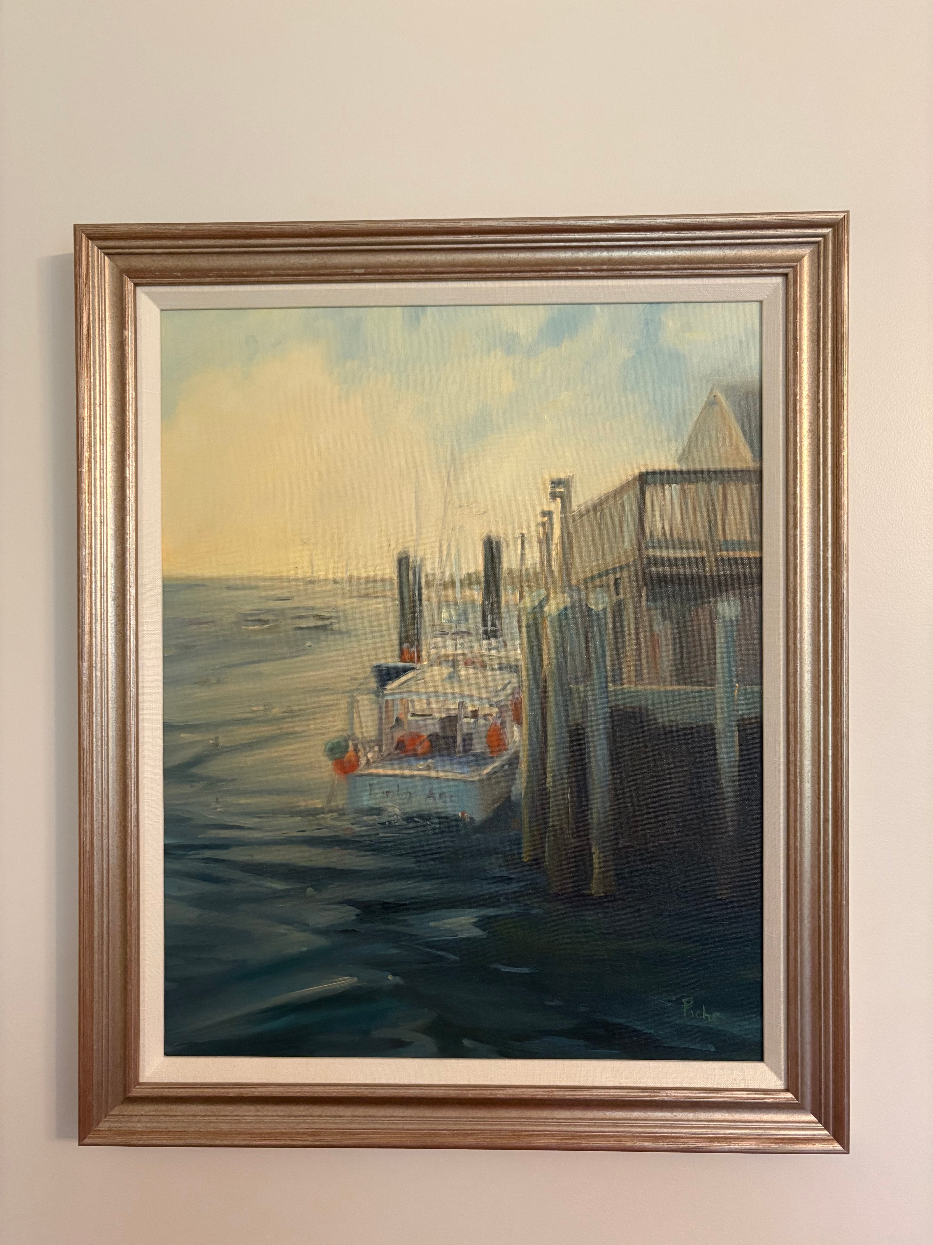 "We are the proud owners of six of Vanessa Piche’s original paintings. The first two were purchased at two different Wickford (Rhode Island) Art Festivals and the next three were commissions. What initially attracted us to Vanessa’s paintings is her uncanny ability to capture color, light and composition. Her skies, with powerful clouds, create an inviting balance whether it is combined with water, people, buildings, or boats. Two of our commissioned paintings are of our grandsons; one with them walking down a dock with crabbing gear and the other of them in waist deep water digging quahogs. She nailed both of them so well. The third commission is of the Narragansett coast line with the perspective from Narragansett Bay. Our most recent painting we purchased from Vanessa was one of her earlier renderings of the RI coastline depicting “Beavertail (Jamestown, RI) Looking North,” capturing its rocky coast line, waves and its powerful ability to wreak havoc on mariners venturing too close. Vanessa is clearly one of our favorite artists and her work is displayed prominently throughout our home. Her versatility has served her well."