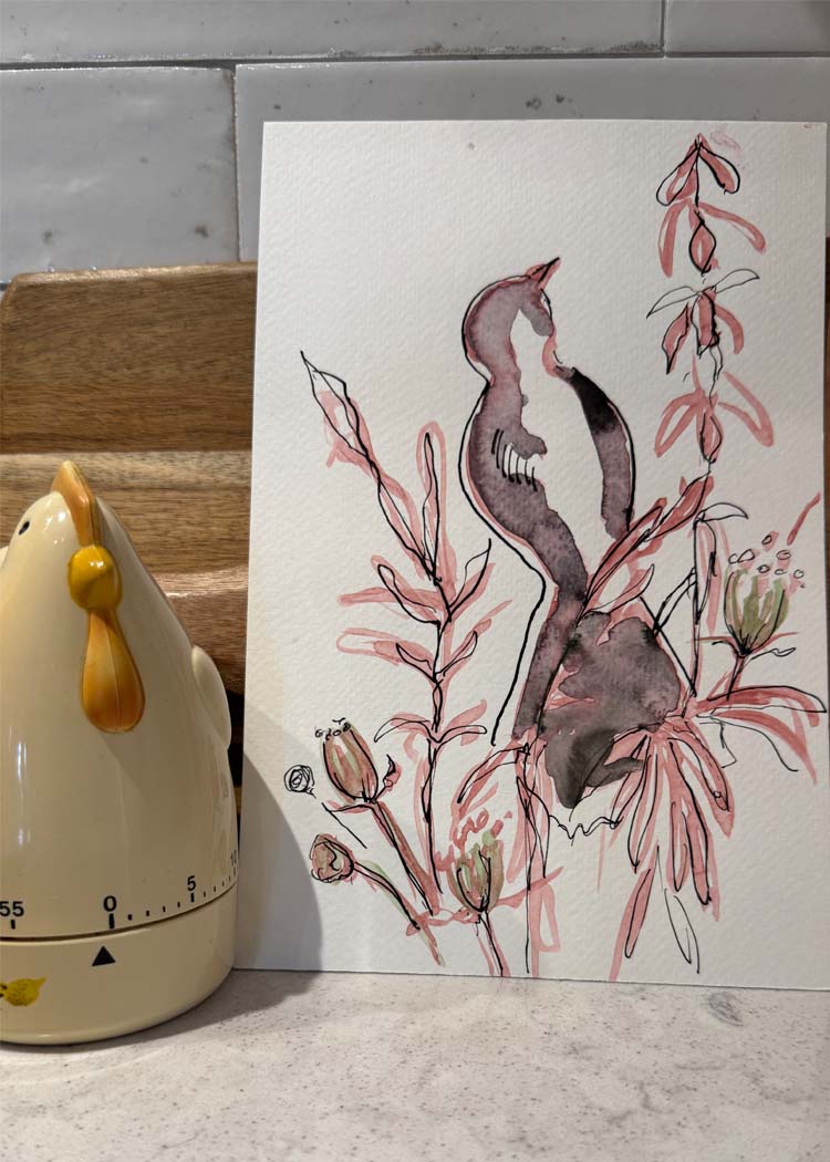 Each piece from the Chicken Scratch Collection is hand-painted with watercolor or gouache on cold pressed watercolor paper. Paper sizes are approximate, as each piece is either hand-torn or hand-cut. Imperfect in the best way—just like the farm that inspired them.