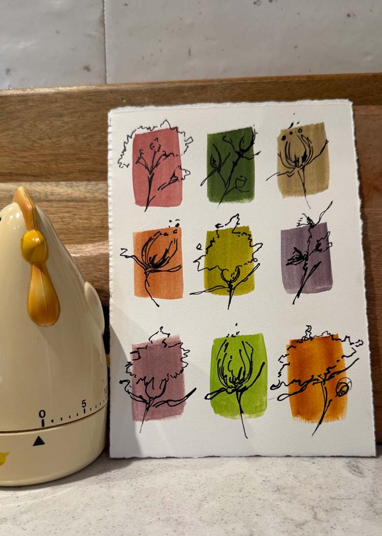 Each piece from the Chicken Scratch Collection is hand-painted with watercolor or gouache on cold pressed watercolor paper. Paper sizes are approximate, as each piece is either hand-torn or hand-cut. Imperfect in the best way—just like the farm that inspired them.