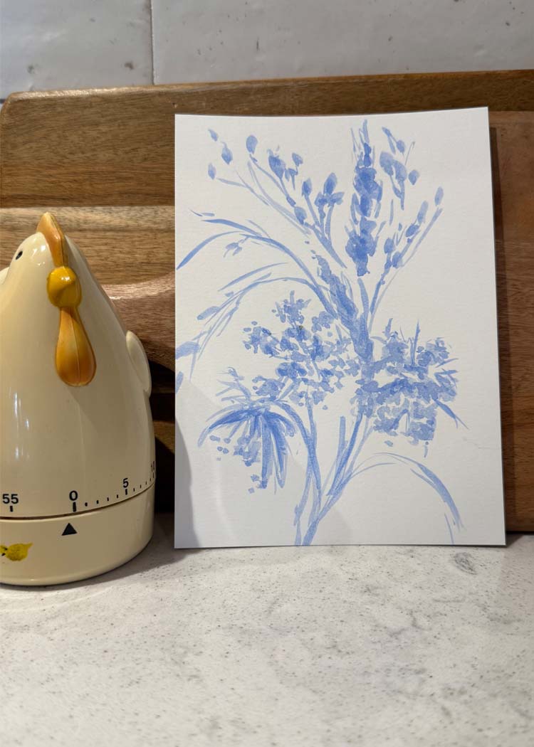 Each piece from the Chicken Scratch Collection is hand-painted with watercolor or gouache on cold pressed watercolor paper. Paper sizes are approximate, as each piece is either hand-torn or hand-cut. Imperfect in the best way—just like the farm that inspired them.