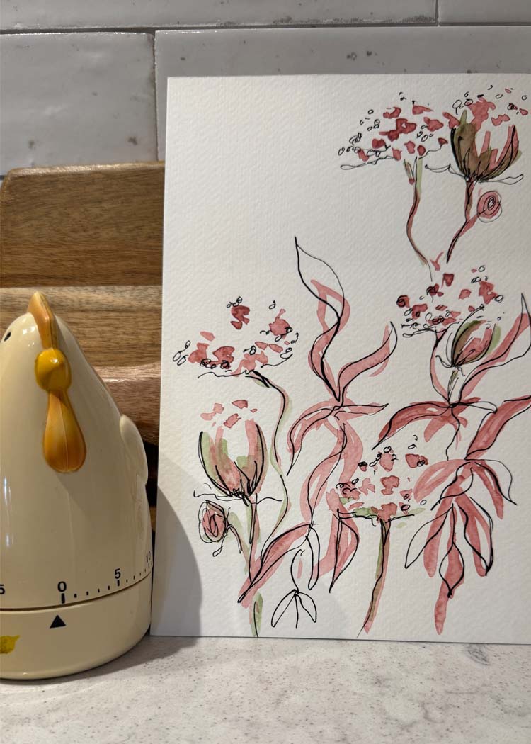 Each piece from the Chicken Scratch Collection is hand-painted with watercolor or gouache on cold pressed watercolor paper. Paper sizes are approximate, as each piece is either hand-torn or hand-cut. Imperfect in the best way—just like the farm that inspired them.