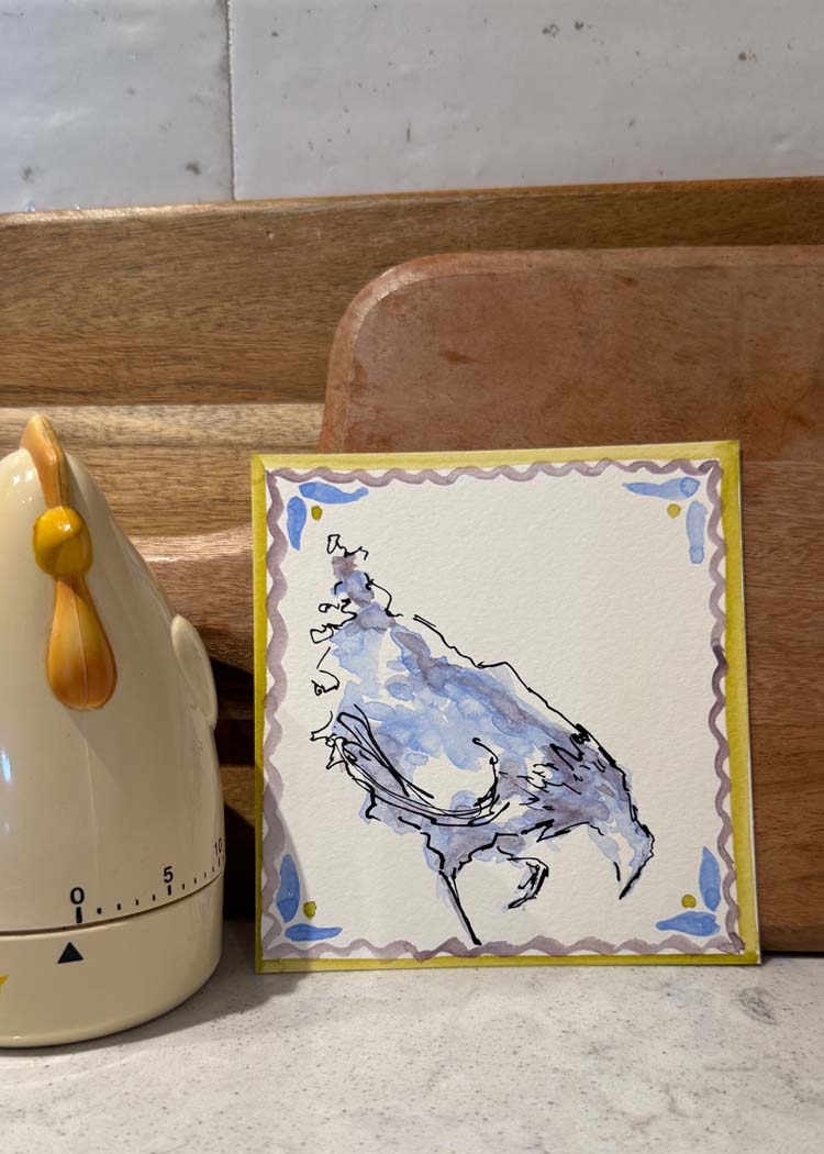 Each piece from the Chicken Scratch Collection is hand-painted with watercolor or gouache on cold pressed watercolor paper. Paper sizes are approximate, as each piece is either hand-torn or hand-cut. Imperfect in the best way—just like the farm that inspired them.