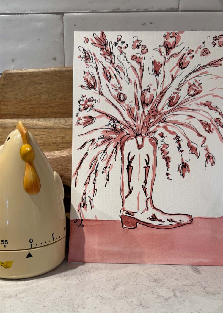 Each piece from the Chicken Scratch Collection is hand-painted with watercolor or gouache on cold pressed watercolor paper. Paper sizes are approximate, as each piece is either hand-torn or hand-cut. Imperfect in the best way—just like the farm that inspired them.