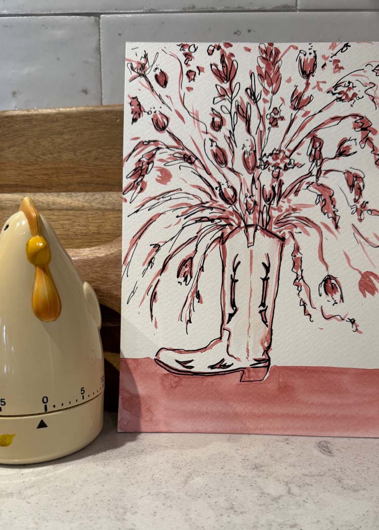Each piece from the Chicken Scratch Collection is hand-painted with watercolor or gouache on cold pressed watercolor paper. Paper sizes are approximate, as each piece is either hand-torn or hand-cut. Imperfect in the best way—just like the farm that inspired them.