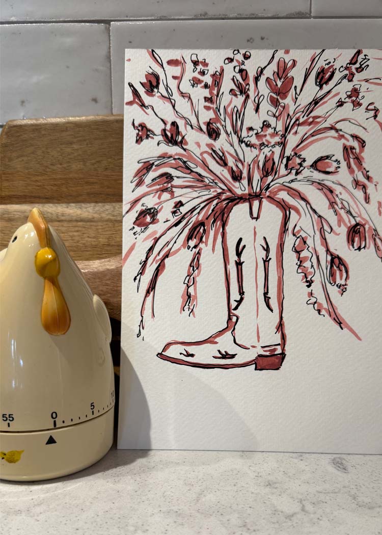 Each piece from the Chicken Scratch Collection is hand-painted with watercolor or gouache on cold pressed watercolor paper. Paper sizes are approximate, as each piece is either hand-torn or hand-cut. Imperfect in the best way—just like the farm that inspired them.